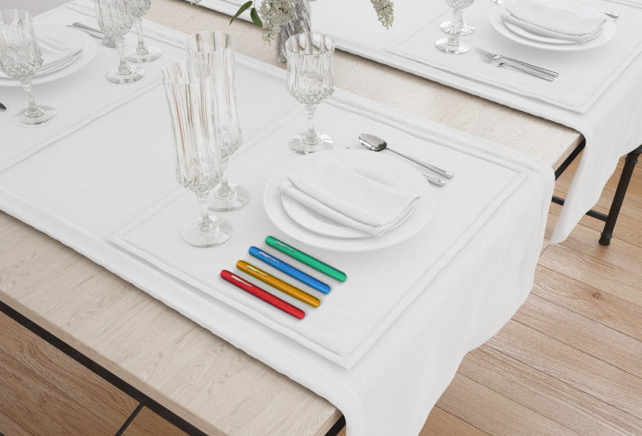 Our original, patented design is the best crumber for keeping tables clean and clear of crumbs. Our crumbers are available in six colors, with or without laser engraving.